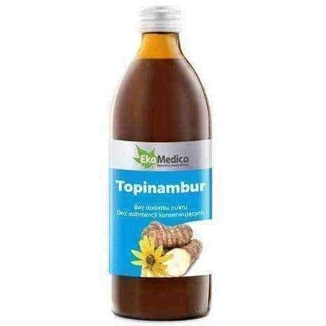 - Jerusalem artichoke juice. The pasteurized Topinambur juice brand EkaMedica is a unique way to enrich your daily diet with valuable substances. The preparation is, among other things, a source of natural vitamin C derived from the camu camu fruit extract.
