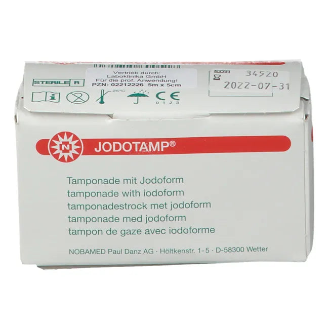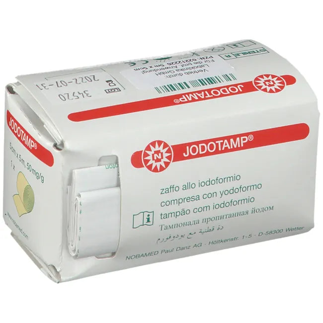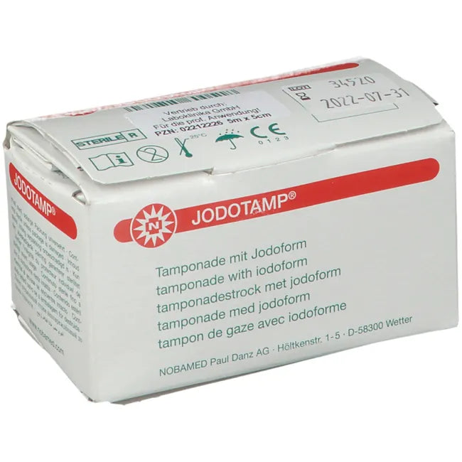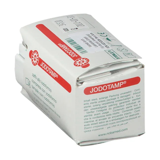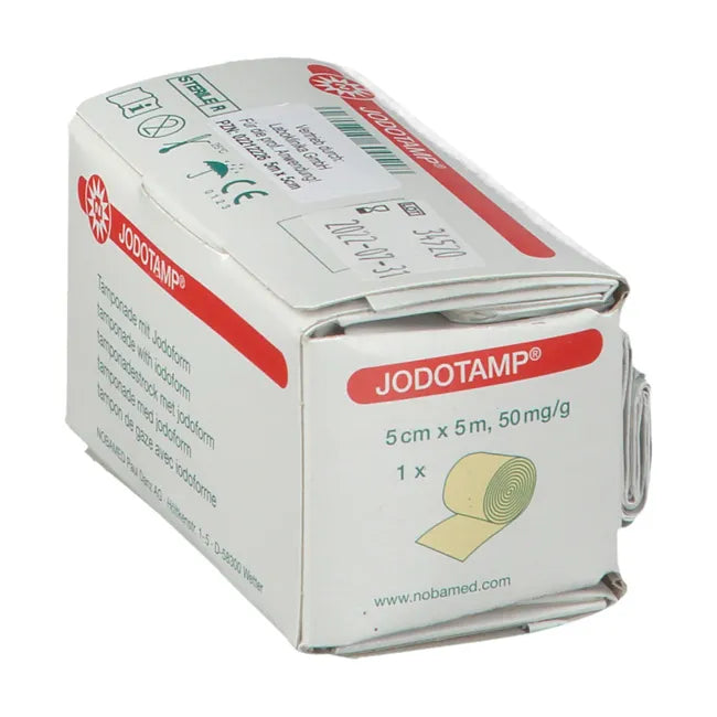 JODOTAMP® is a sterile product consisting of a tamponade strip impregnated with 50 mg/g iodoform.