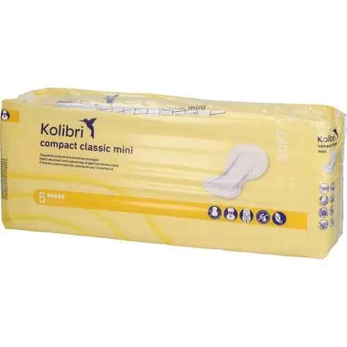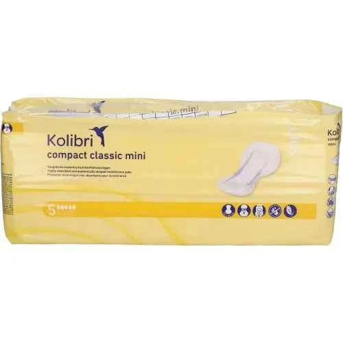 The Kolibri compact classic mini pads are perfect for mild to moderate incontinence. The light yellow Kolibri compact classic mini pads are excellent for economical incontinence care. They reduce rewetting thanks to optimal absorbency and absorbent body. Optimized side leak barriers improve leak protection, as does the high level of comfort achieved by the optimized anatomical fit. The outer film, colored to indicate the absorbency level, makes it easy to identify the absorbency level. The Optimal Odourstop System, with its superabsorbent, ensures rapid odor control, quickly locking in odors. This also helps maintain a dry skin feeling.