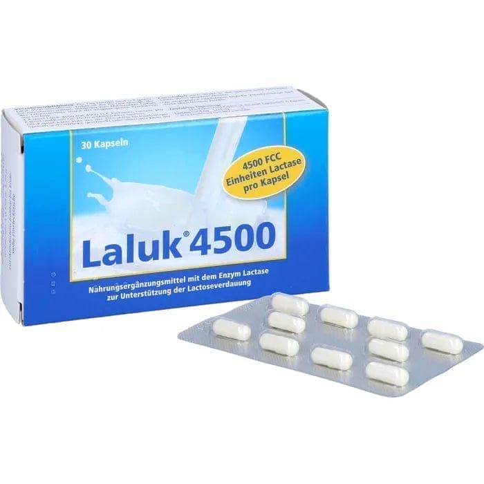 You can take 1-5 capsules of Laluk ® 4500 per day. The amount of lactase that you should take depends on the lactose content of the food and the body's own production of lactase.