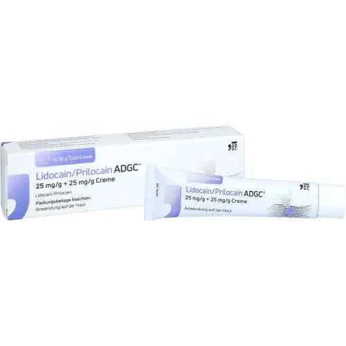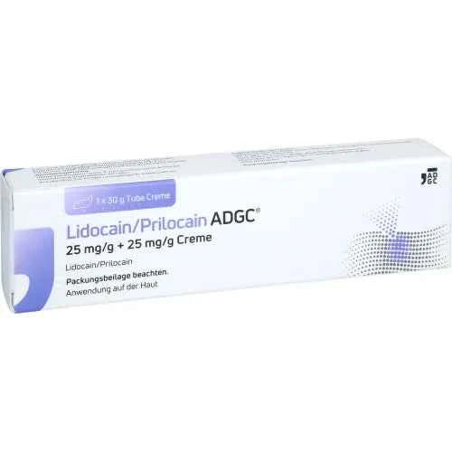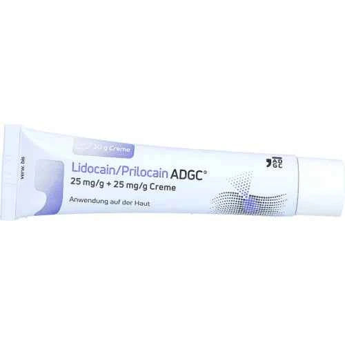Lidocaine/Prilocaine ADGC ® is an numbing cream that is applied to the skin and locally relieves pain on the skin's surface. It contains the two active ingredients lidocaine and prilocaine. The cream can be used when effective and local anesthesia of the skin is required, e.g. For example, for: