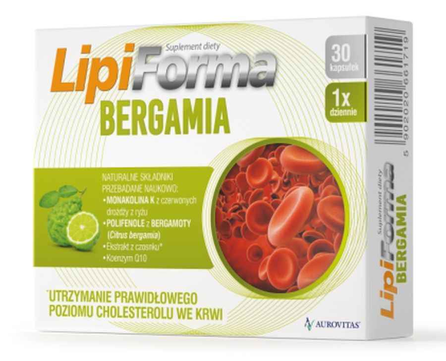This product should not be consumed by pregnant or breastfeeding women, children under 18 years of age, or adults over 70 years of age. If you experience any health problems, consult your doctor about taking a dietary supplement. Before taking LipiForma Bergamia, it is recommended to have your blood cholesterol level checked and consult a doctor. Do not use if you are taking cholesterol-lowering medications, other products containing fermented red rice, or are hypersensitive to any of the ingredients. Do not exceed the recommended daily dose. This product is a dietary supplement and should not be used as a substitute for a varied diet. A balanced diet and a healthy lifestyle are recommended. Store in a dry place. Protect from light and moisture. Store at a temperature not exceeding 25°C, out of reach of small children.