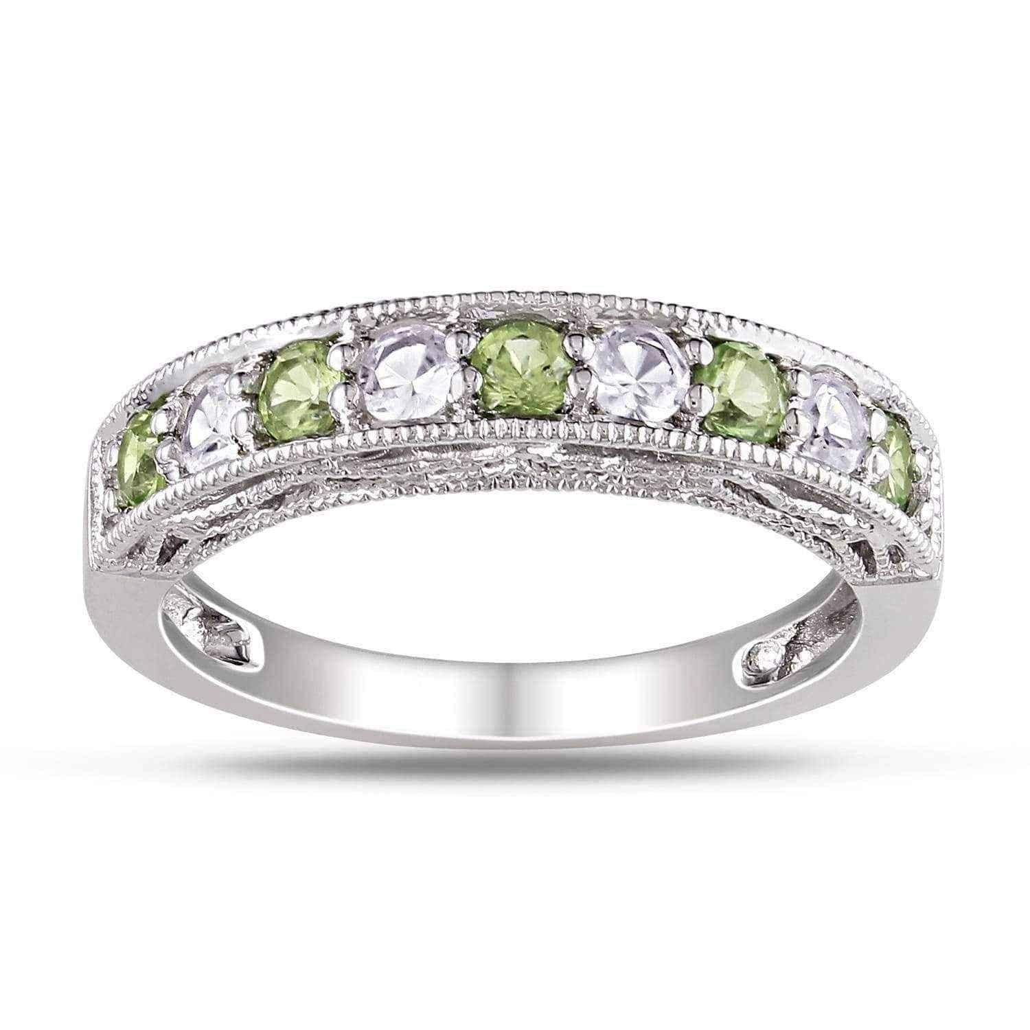 Miadora Sterling Silver White Sapphire and Gemstone Stackable Anniversary Ring