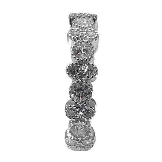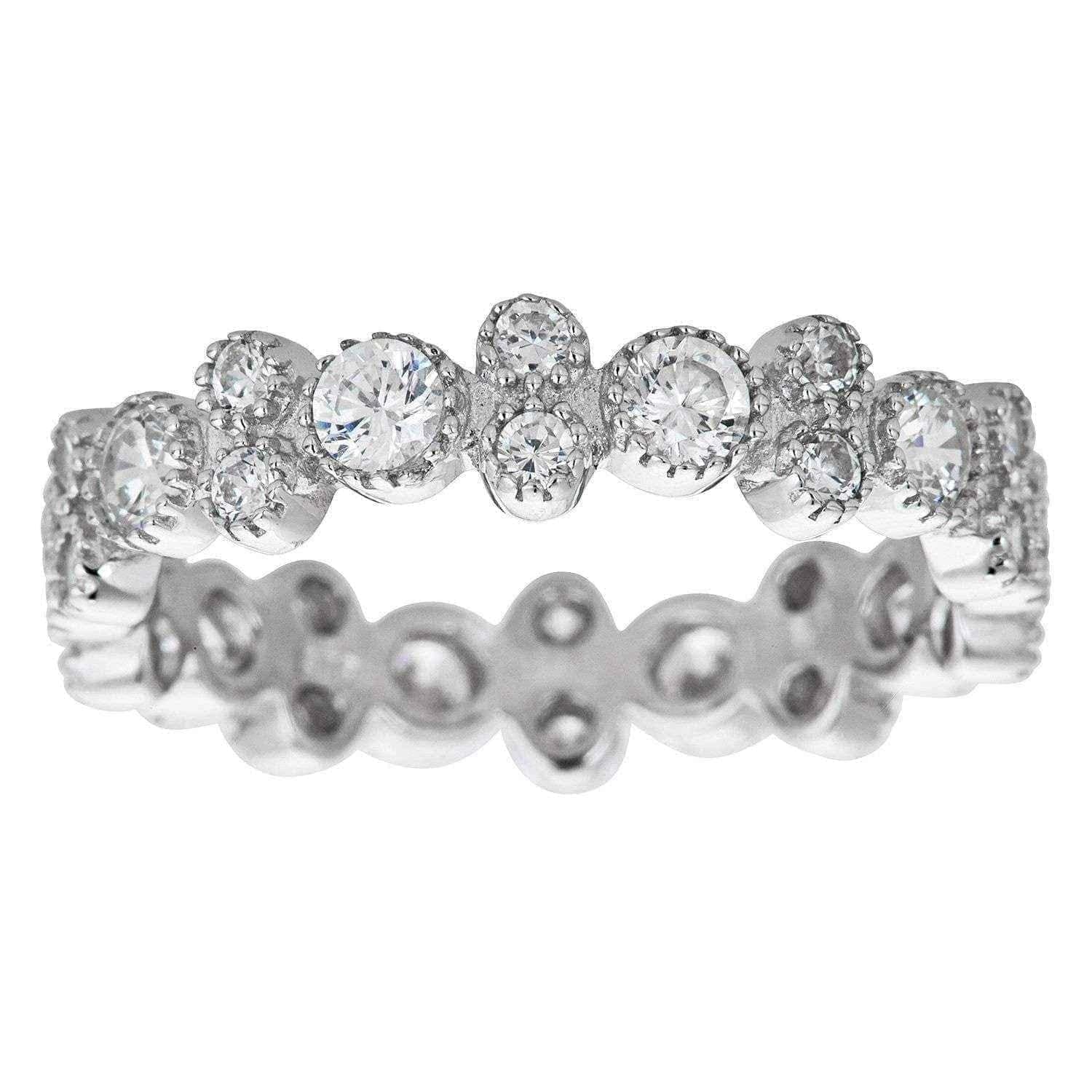 Finely crafted of sterling silver, this ring showcases micropave round-cut white cubic zirconia stones for a dazzling effect. The ring features an eternity design and is polished to a high shine finish.