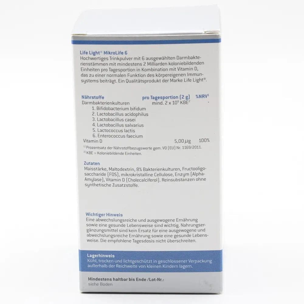 High-quality probiotic drinking powder with 6 combined intestinal bacterial strains with a high total probiotic activity of at least 2 billion colony-forming units per daily dose in combination with vitamin D, which contributes to the normal functioning of the body's immune system. A quality product from the Life Light ® brand.