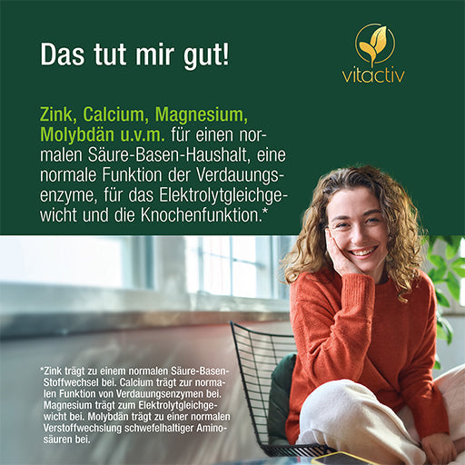 The calcium and magnesium contained here are two marine raw materials from the Aquamin brand. Both come from purely natural mineral sources - for particularly high bioavailability. **