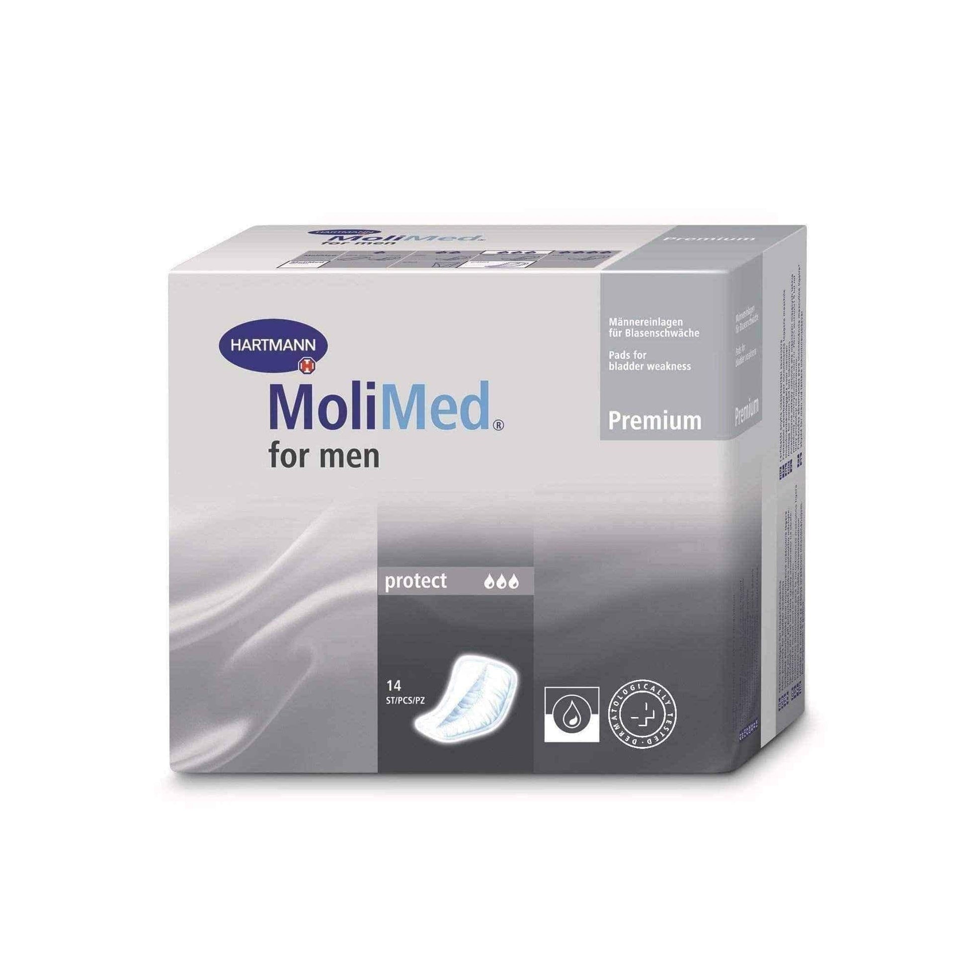 - Molimed for men protect. Hartmann has developed absorbent bodies adapted to the anatomical shape of a man. MoliMed to protect men's contribution to the V-shaped It will maintain the quality of life masters the problem of light incontinence.