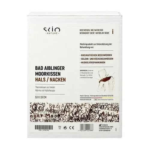 The SCIO Bad Aiblinger Moor Pillow for the Neck/Neck is a thermal pillow for local heat and cold therapies to support the treatment of tension in the neck, neck, and shoulder area, as well as rheumatic complaints in the knee, elbow, and shoulder. Unlike other materials, mud has the ability to store heat or cold for a long time and release it very slowly. The pillow, with its special soft film, is extra thin, hygienic, skin-friendly, and adapts perfectly to the body. When used as heat therapy, the released heat relieves pain, promotes blood circulation, and thus the supply of nutrients to the cells and joints. The long-lasting release of heat loosens and relaxes tense muscles. Cold application with the mud pillow is recommended for acute pain and inflammation, e.g., sprains, bruises, or acute inflammatory joint processes. Place the mud pillow in the refrigerator for at least one hour.