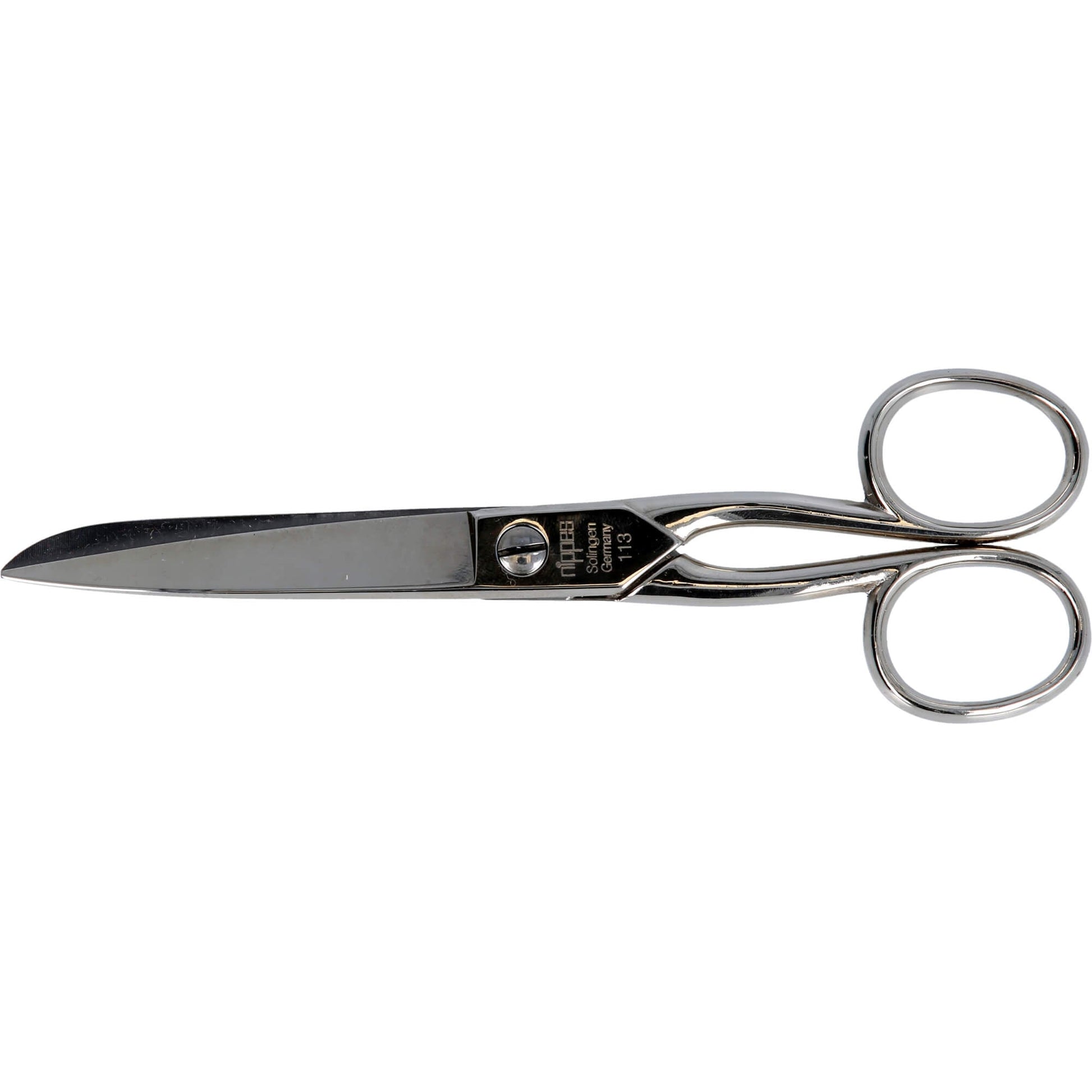 The small, nimble helper in the home, always within reach, practical size, cuts most common materials, with curved handles, nickel-plated, assembled and sharpened by hand, Nippes quality, Made in Solingen.